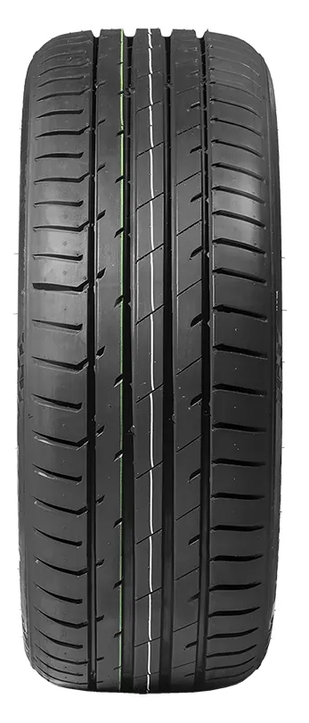 Delinte DS7 Sport используется в наиболее мощных модификациях легковых автомобилей. Относится к моделям категории UHP, отличаясь способностью сохранять эффективность при больших скоростях. В движении характеризуется молниеносностью в реакциях на действия водителя, курсовой устойчивостью при маневрировании и коротким путем замедления на мокрой поверхности. Протекторный рисунок отличает массивность образующих его элементов. В центральной части таковыми являются широкие продольные ребра. Они повышают курсовую устойчивость на прямых, уменьшают износ и сопротивление качению. Плечевые зоны представляют собой массивные развернутые поперек блоки, жестко соединенные между собой перемычками. Эти элементы повышают точность управления и стабильность сцепных свойств при маневрировании и торможении. Эффективность работы протектора на мокрой поверхности обеспечивается за счет значительной пропускной способности продольных дренажных канавок в центральной части.