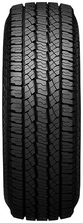 Nexen Roadian A/T 4x4 предназначена для внедорожников и пикапов. Выгодно отличается широкой сферой применения, благодаря своей высокой эффективности, как на асфальтированных, так и проселочных дорогах, в том числе и с жестким каменистым покрытием. Дизайн протекторного рисунка отличает распределение элементов по продольным ребрам. Такое решение уменьшает рысканье и сопротивление качению на высокой скорости. При этом большое количество и разнонаправленность дренажных канавок и ламелей позволяет шине демонстрировать надежность сцепных свойств на мокром асфальте и каменистых поверхностях. Плечевые зоны выполнены открытыми. Формирующие их остроугольные поперечные блоки позволяют сохранять устойчивость и точность в управлении на высокой скорости. На грунтовых поверхностях такой дизайн улучшает тягово-сцепные свойства. Стоит отметить усиленную конструкцию и «гибридное» строение каркаса. Сочетание увеличенного количества кордов и применение при их изготовлении, как стали, так и современных синтетических материалов придает на неровностях ходу мягкость и снижает риск механического повреждения беговой части протектора.