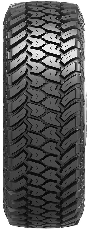 Sailun Terramax M/T предназначена для внедорожников и кроссоверов. Рекомендуется производителем к применению на грунтовых поверхностях различного типа с пониженной несущей способностью. В таких условиях выгодно отличается стабильным и высоким тяговым усилием, курсовой устойчивостью, мягким ходом и надежностью. Особенностью протекторного рисунка является распределение блоков по группам, за счет чего в пятне контакта образуются непрерывные Z-образные поперечные кромки. Вкупе с большой высотой элементов это существенно повышает тяговое усилие на грунтовой поверхности. При этом значительное расстояние между блоками, особенно в плечевых зонах позволяет протектору не «замыливаться», улучшая проходимость на бездорожье. Еще одной немаловажной особенностью является профиль элементов по краям протектора. Он минимизирует риск механического повреждения шины, увеличивая срок ее службы в самых сложных условиях. Здесь стоит отметить использование 3-слойного полимерного корда в брекере. Помимо повышения надежности такое решение придает шине более мягкий ход на неровностях.